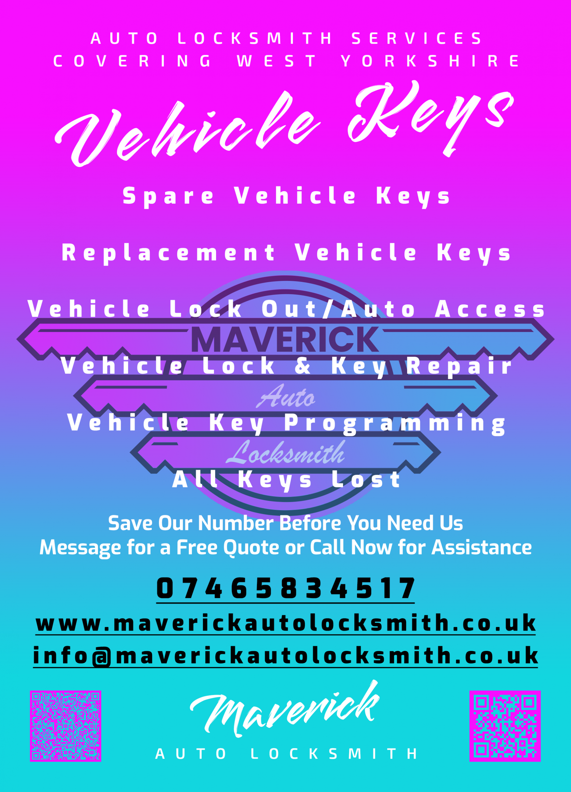 Example of some of the areas Maverick auto locksmith west yorkshire serve but not inclusive, Maverick auto locksmith provides services across all west yorkshire please get in touch and we will endevour to help you.